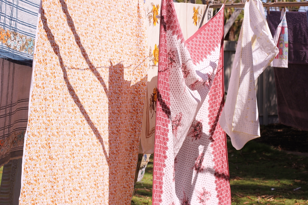 I don't love hanging up washing, but when it's vintage floral and new fabric scores it doesn't seem to be such a pain. Fresh air, sunshine and a bit of solitude is just what the doctor ordered, methinks...